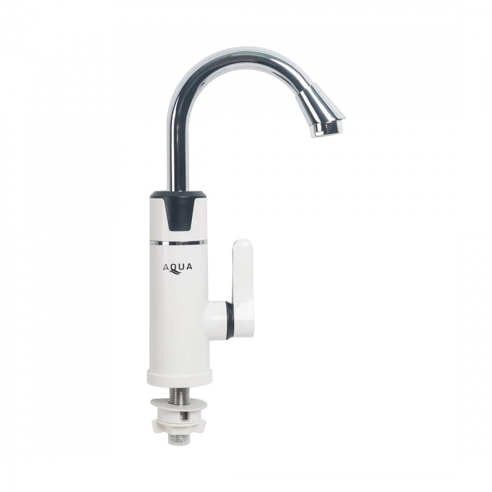 - Бытовой кран с подогревом воды AQUA BEF-008B Бытовой кран с подогревом воды AQUA BEF-008B – это современное выдающееся изделие, сочетающее в себе экономию энергии и избежание ненужных трат, сил, средств и времени на приобретение дополнительного оборудования для создания домашнего комфорта и дающее все преимущества пользования горячей водой и соблюдения всех гигиенических процедур. Фактически в одном изделии два продукта: это смеситель и проточный водонагреватель. Данный кран подключается только к системе холодного водоснабжения и к бытовой электрической сети 220В, 50Гц. Нагрев холодной воды происходит с помощью электронагревательного элемента, за счёт преобразования электрической энергии в тепловую в камере нагрева, расположенной в корпусе крана до температуры +60 С