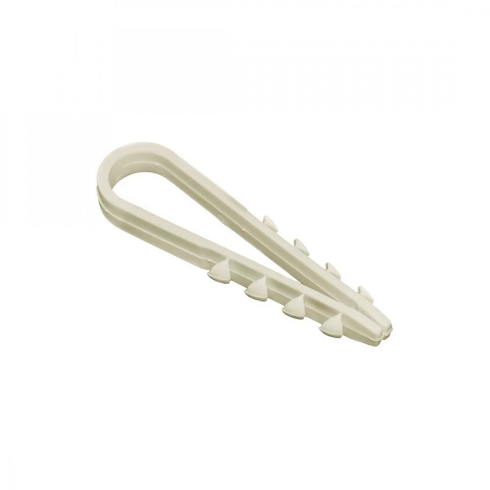 Состоит целиком и полностью из пластика. Механизм работы таков: дюбель вбивается в стену, а в него забивается гвоздь для фиксации дюбеля в стене. И всё! Хомут готов к своей основной функции – скреплять вышеупомянутые изделия.