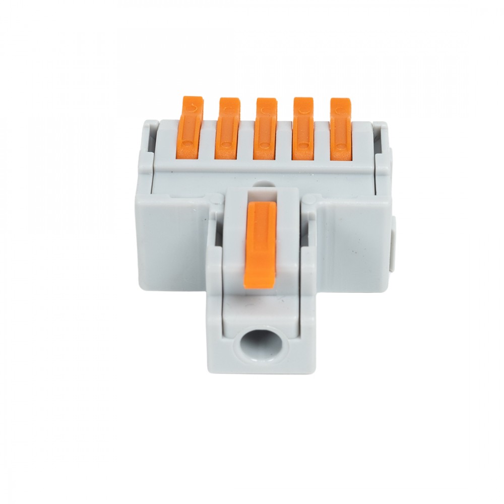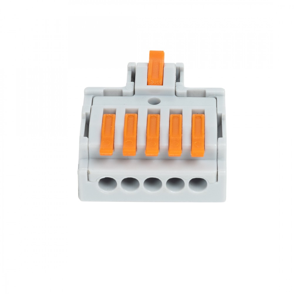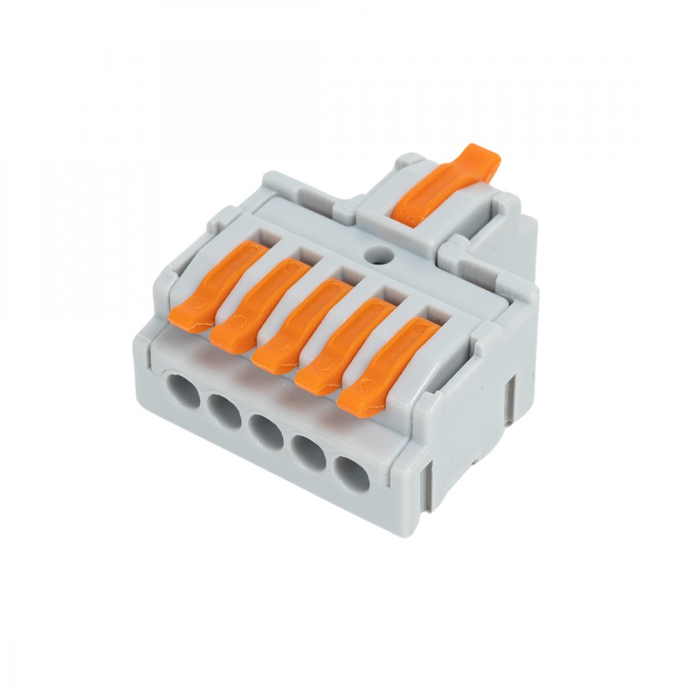 - Клемма Deluxe F15 (0,08-4,0мм 32А) 1 ввод 5 выводов Клемма пружинная универсальная для сечения проводников, без пасты, материал изделия — пластик, латунь