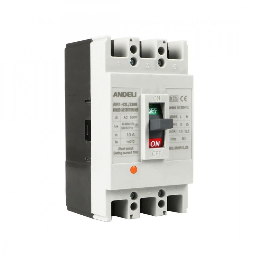 - Автоматический выключатель ANDELI AM1-63L 3P 16A Предназначен для защиты от коротких замыканий, перегрузок, недопустимых снижений напряжения и проведения тока в нормальном режиме в трехфазных электрических сетях переменного тока напряжением до 660 V с частотой 50/60 Hz. Также возможно использование для редкого включения или отключения цепи в нормальных условиях.