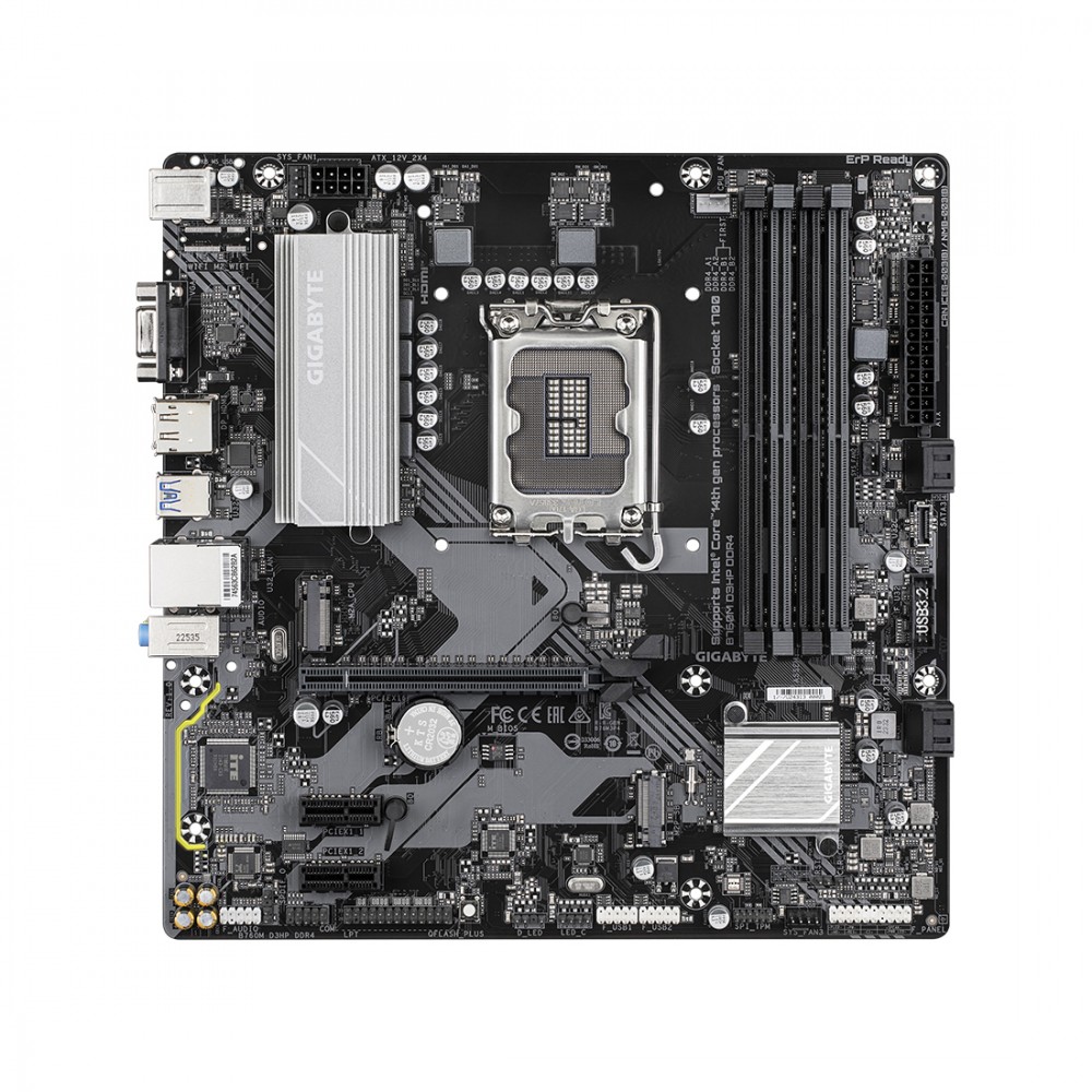 - Материнская плата Gigabyte B760M D3HP DDR4 Совместимость с процессорами Intel® Core™ 14-/13-/12-поколения Непревзойдённая производительность: гибридный цифровой VRM-модуль, схема питания 4+1+1 фазы 2 канала DDR4: 4 разъёма DIMM, полноценная поддержка XMP профилей Дисковая подсистема нового поколения: 2 разъёма M.2 PCIe 4.0 x4 Высокоскоростные сетевые интерфейсы: GbE LAN Расширенные коммуникационные возможности: Разъём для порта USB-C® 5 Гбит/с, DP, HDMI, D-Sub на лицевой панели Функция Smart Fan 6: Массив датчиков температуры, гибридные разъёмы для вентиляторов, функция FAN STOP Кнопка Q-Flash Plus: Возможность обновления микрокода BIOS материнской платы без необходимости установки в систему ЦП, модулей ОЗУ и дискретной графической платы