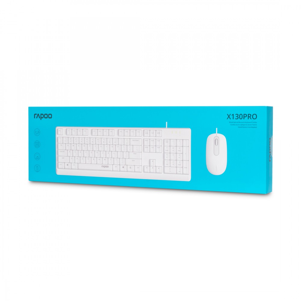 - Комплект Клавиатура + Мышь Rapoo NX130PRO White Раскладка клавиатуры, разработанная специально для среднеазиатского региона, имеет красивый и ровный шрифт, нанесена при помощи точного лазера и защищена от стирания УФ-покрытием